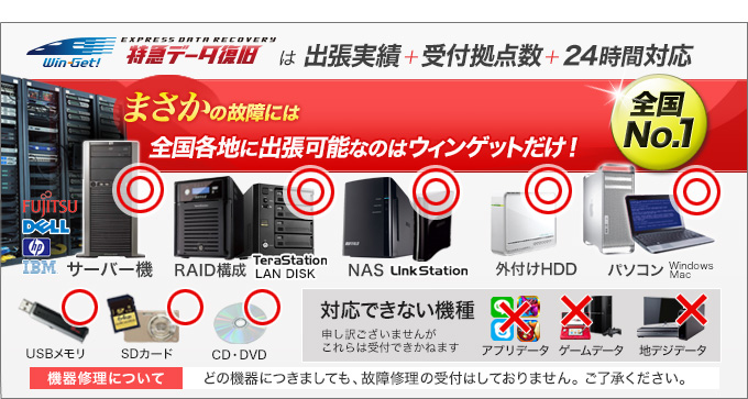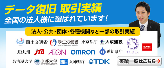 特急データ復旧ウィンゲットの神戸オフィスで特急対応致しましたお客様のデータ復旧実績を一部掲載させていただいております。