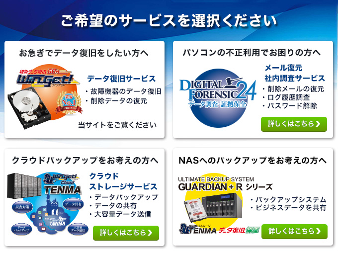 私共は、復旧したデータの保護に弊社クラウドサービスを利用していただくことも可能ですので、お困りの際は是非ご相談ください!