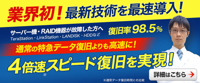 重要データの復旧に成功し、お客様にご満足いただけました。