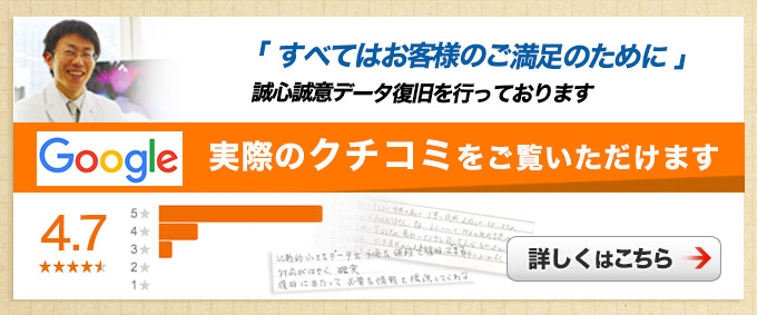 重要としていたデータが全て復旧出来て大変助かりました。 |
