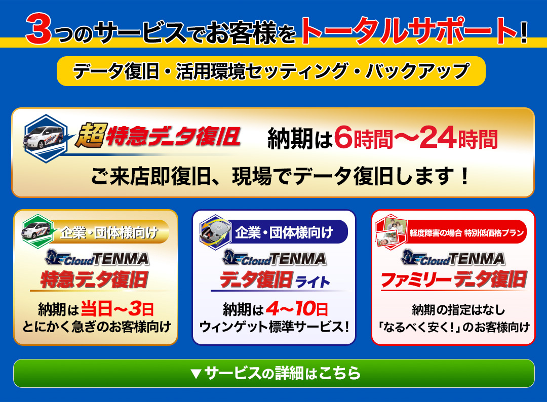 私共はデータ復旧に限らず、あらゆる面からお客様をサポートしてまいりますので、お気軽にご相談ください!