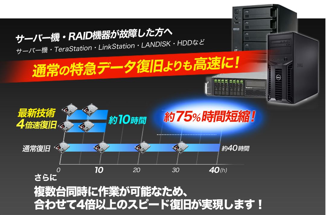 緊急を要するお客様、社内規定で機器の持ち出しができないお客様、ご要望により弊社は柔軟に、そして特急でデータ復旧いたします。ぜひご相談ください!